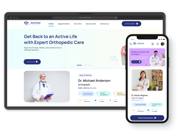 Your personalized website enables your patients to easily book appointments at your clinic or schedule online consultations with your doctors. It serves as a convenient hub where patients can access health resources, stay informed, and connect with the clinic, enhancing their overall healthcare experience. Key Features: