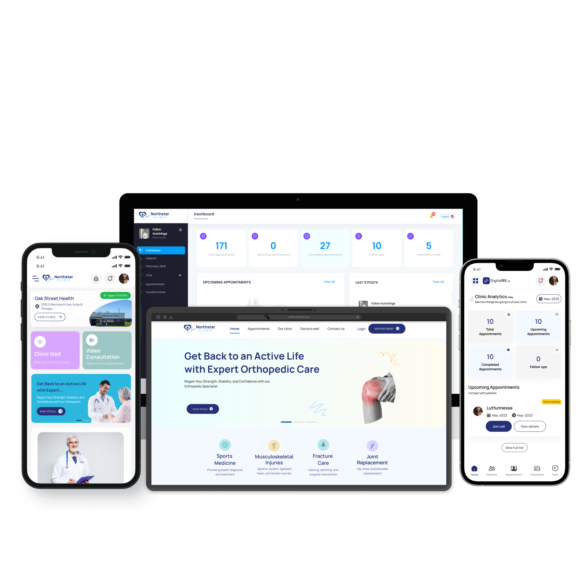 Within our solution, you will get a branded clinic website, a branded clinic app, a doctor app, and a clinic admin portal all with amazing features designed to help you succeed in your online healthcare journey.