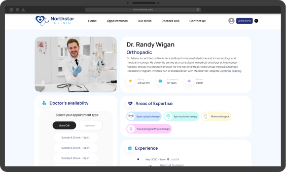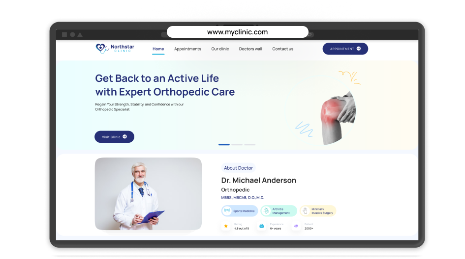 Build your clinic’s online presence and showcase doctors in your branded clinic website