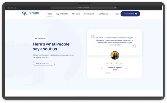 Connect with patients, showcase your expertise, simplify appointment booking, and provide quality telemedicine to your patients, all with your branded clinic website that is ready to launch in just 24 hours. Expand your reach, build trust, and create lasting connections with your patients.