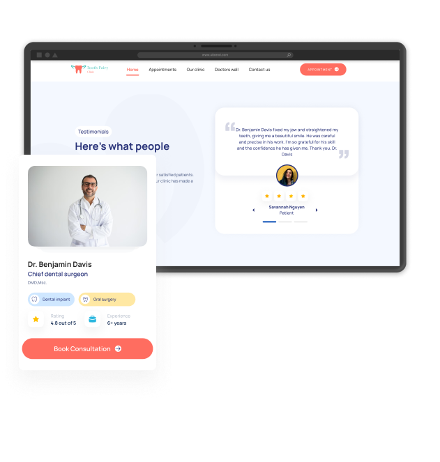 Display the heartwarming experiences of your patients on your Clinic website & Clinic App. These testimonials highlight the excellence of your dental care and how skilled your dentists are, helping you attract more patients to your clinic. They can also help your patients make more informed decisions about their oral health care and inspire them to take care of their dental well-being.