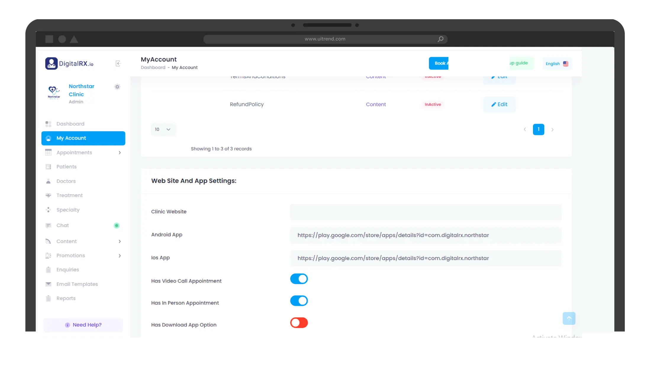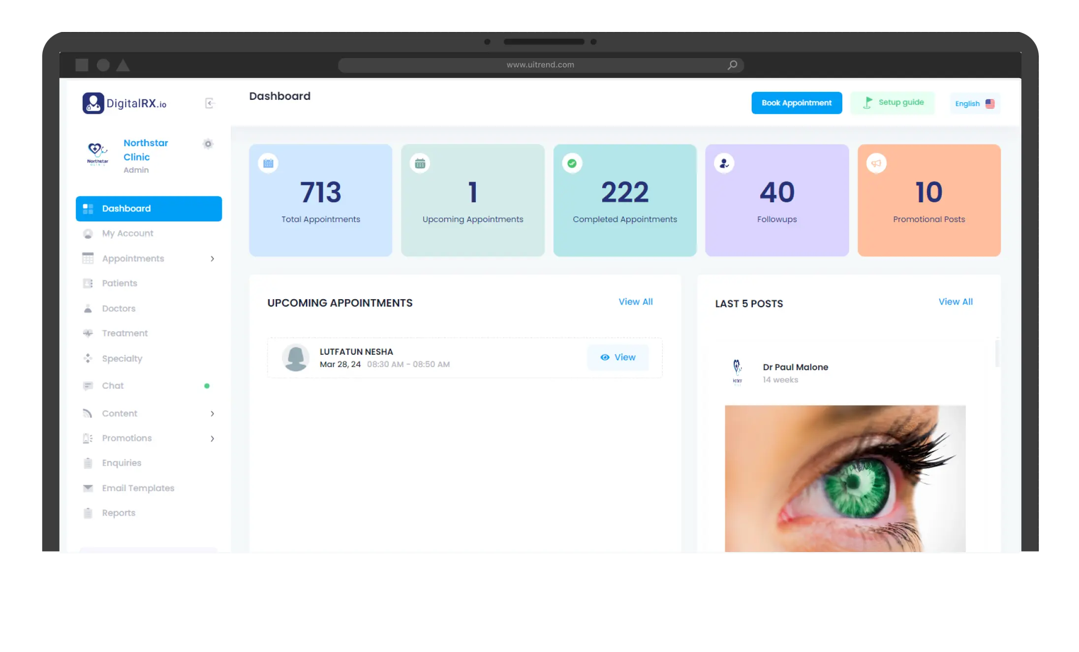 Take control of your clinic's online presence by creating and updating website content directly from the admin portal. Keep patients informed with relevant information about your clinic's services, including detailed descriptions of different treatments, procedures, and medical specialties.