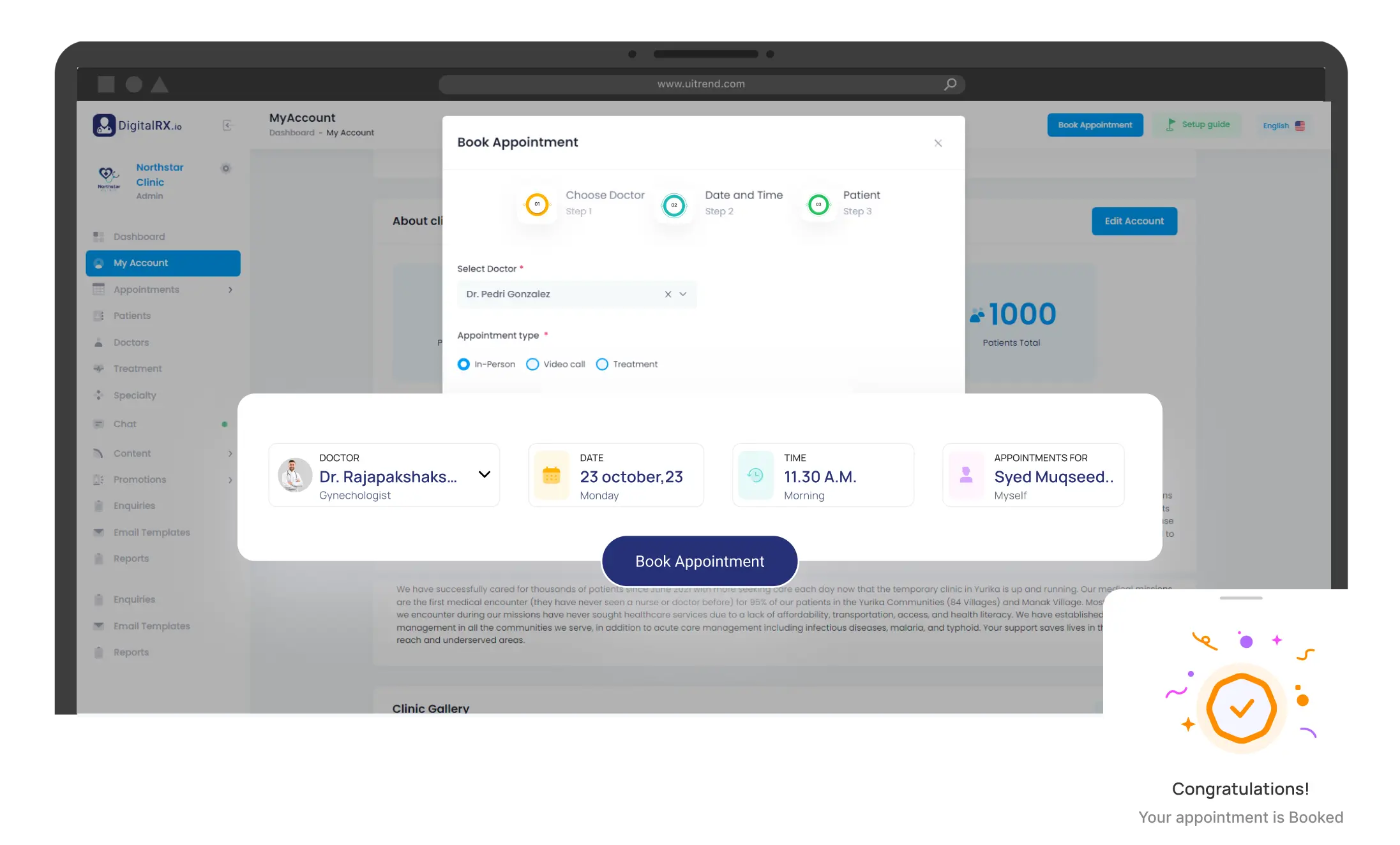 Simplify the appointment scheduling process for your patients with our in-built booking system. It allows for efficient management of appointment slots and easy scheduling adjustments.