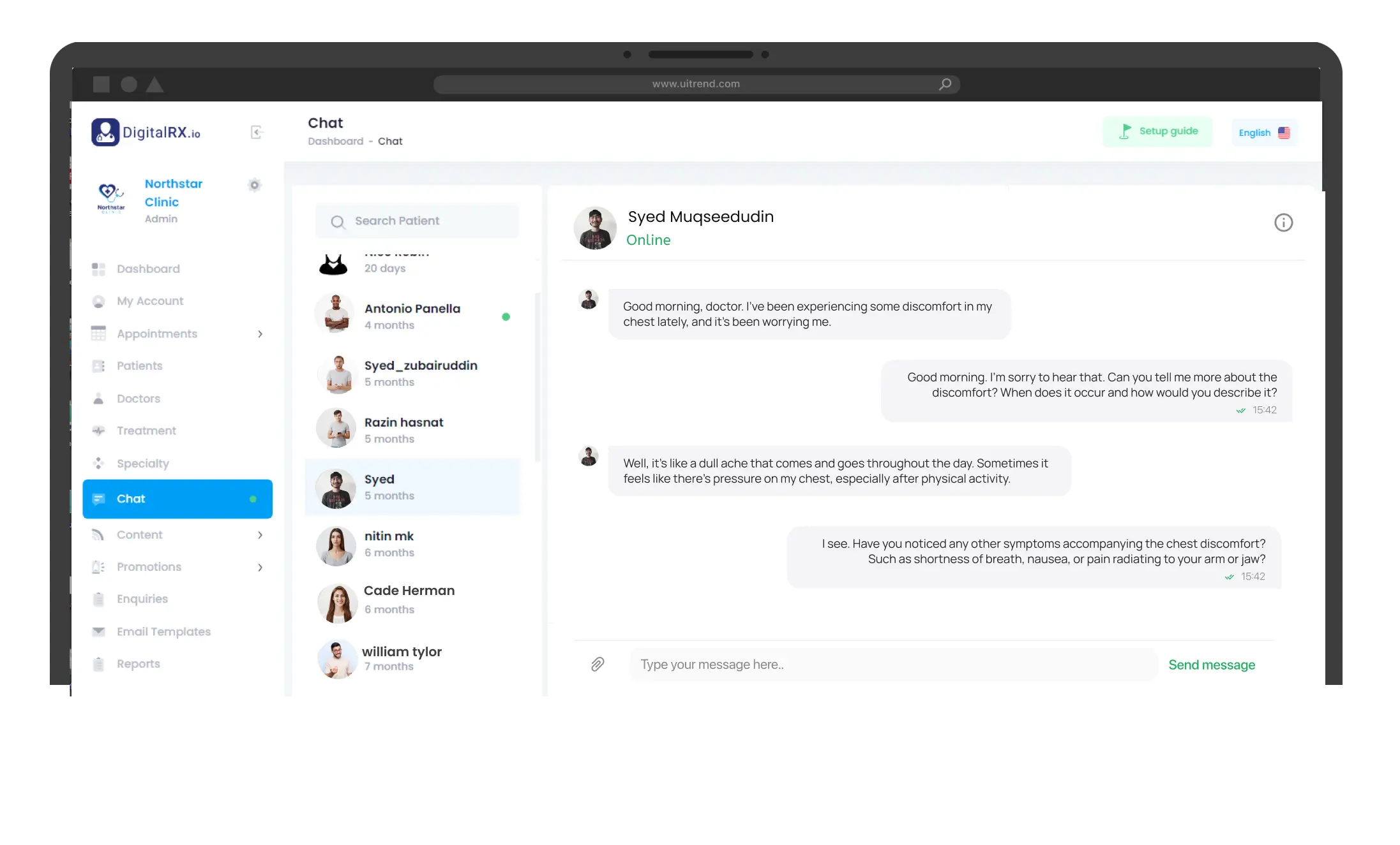 Foster seamless communication between clinic staff and patients through our integrated chat feature. Enable staff to engage in real-time chat conversations with patients to provide immediate assistance, address inquiries, or schedule appointments and enhance the patient experience and satisfaction.