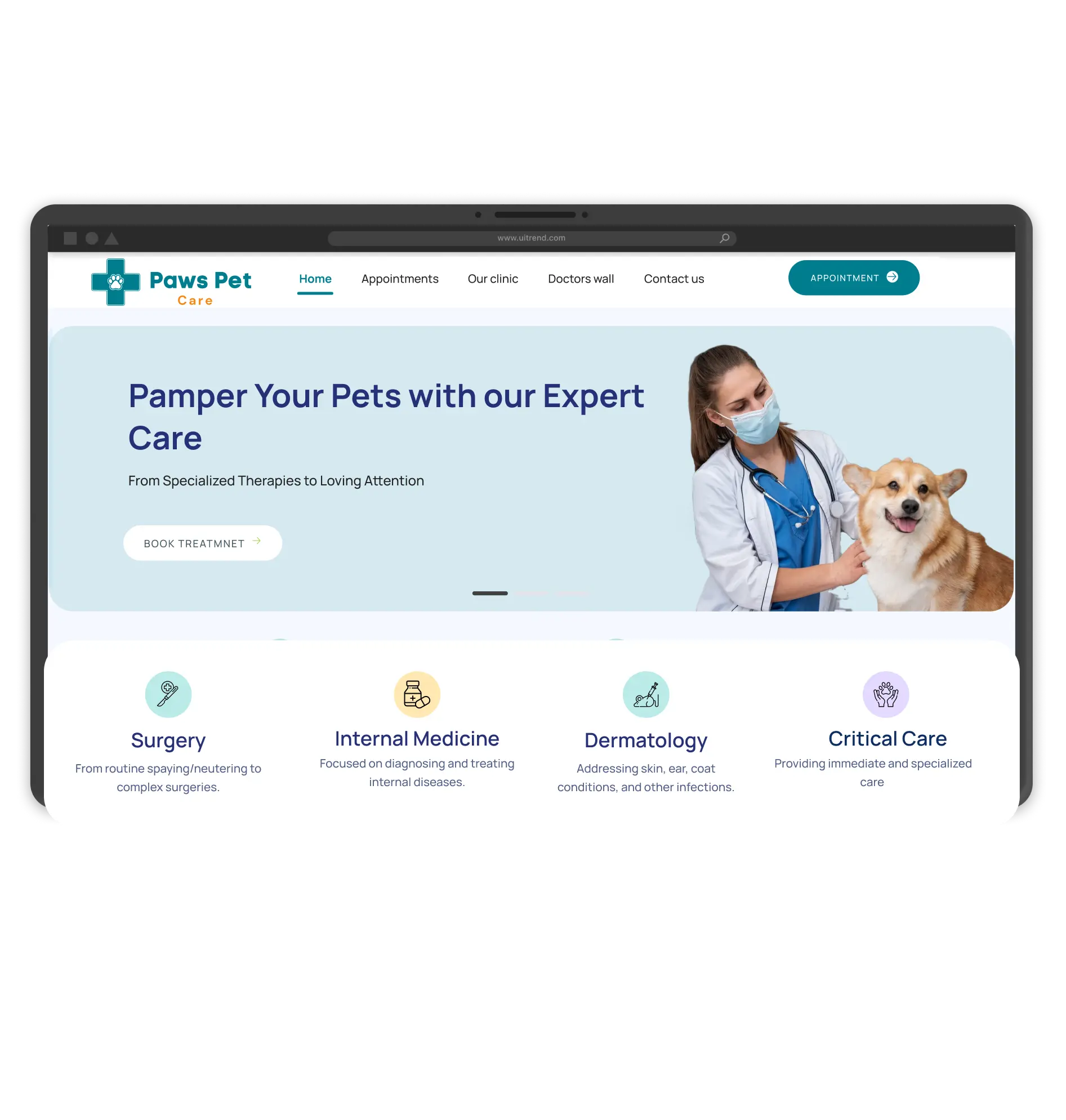 From comprehensive pet examinations to advanced veterinary procedures, present all your services on your branded clinic website and app. Enable pet owners to explore details about treatments, tests, and any other treatment offerings, helping them make informed decisions.