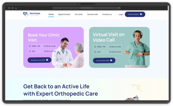 Build your clinic’s online presence and showcase doctors in your branded clinic website