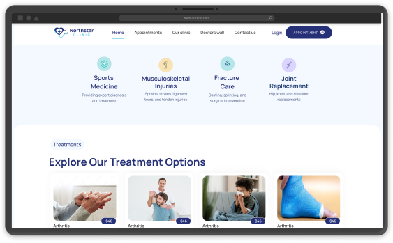 Display the various treatments and services provided by your clinic on your website using our treatments feature. Whether it's orthopedic procedures, gynecological care, dental treatments, or other specialized services, patients can easily learn about and explore the options available. This feature helps attract patients looking for specific treatments while establishing your clinic as a reliable destination for their healthcare needs.