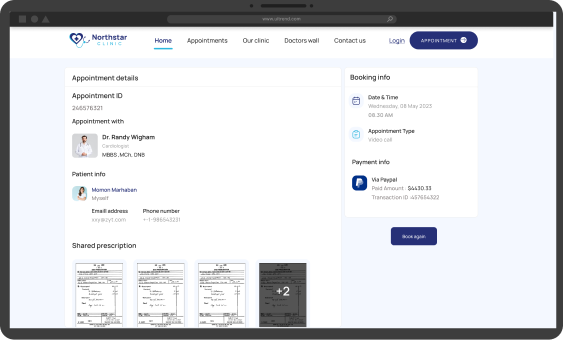 Patients can easily book appointments for clinic visits or online consultations through your branded clinic website. They can conveniently view doctors' availability and choose the most suitable time slot. With online payment options, hassle-free cancellation and rescheduling, and timely notifications and reminders, managing appointments has never been easier.