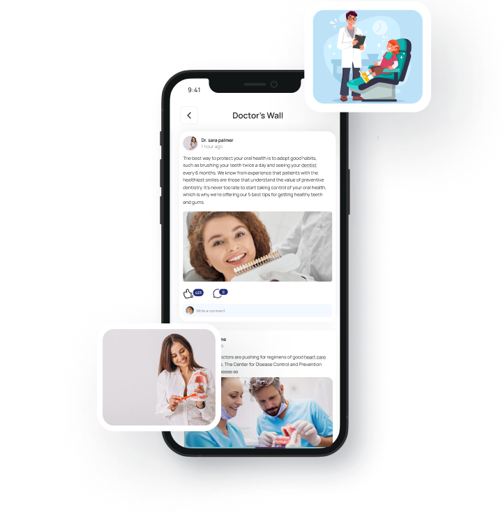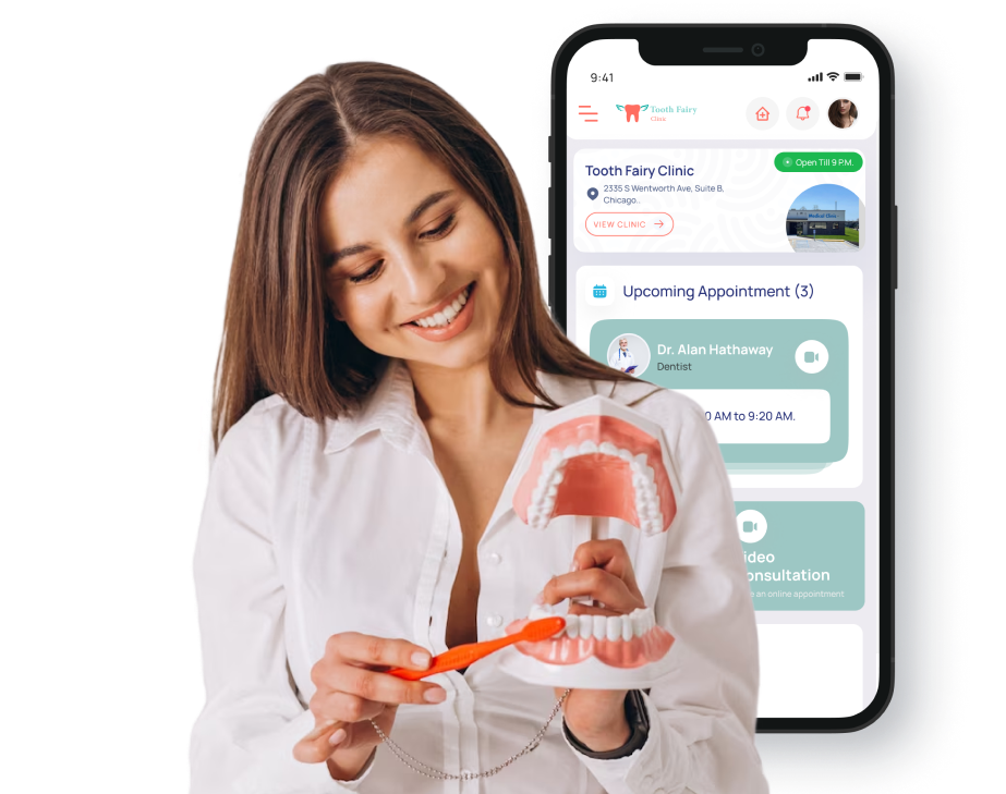 Additionally, manage your appointments with ease, provide video consultations, Share dental health tips, and more.
