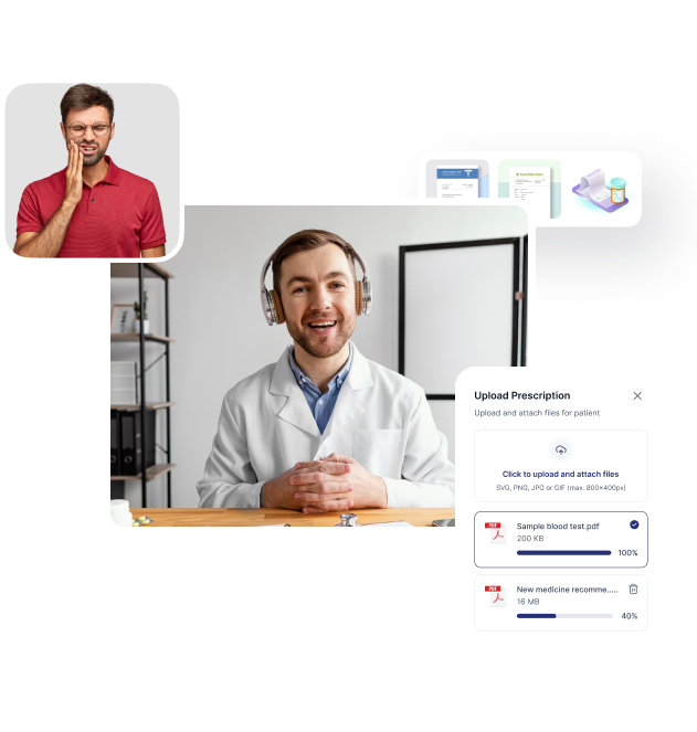 Conduct video consultations with ease. Diagnose your patient’s dental condition, offer dental advice, prescribe medication, and provide follow-up care. With easy video calls, assess the severity of your patient's dental conditions and determine whether they require an immediate, in-office visit or if their situation can be addressed with just a few dental tips and scheduled for treatment at a later time.