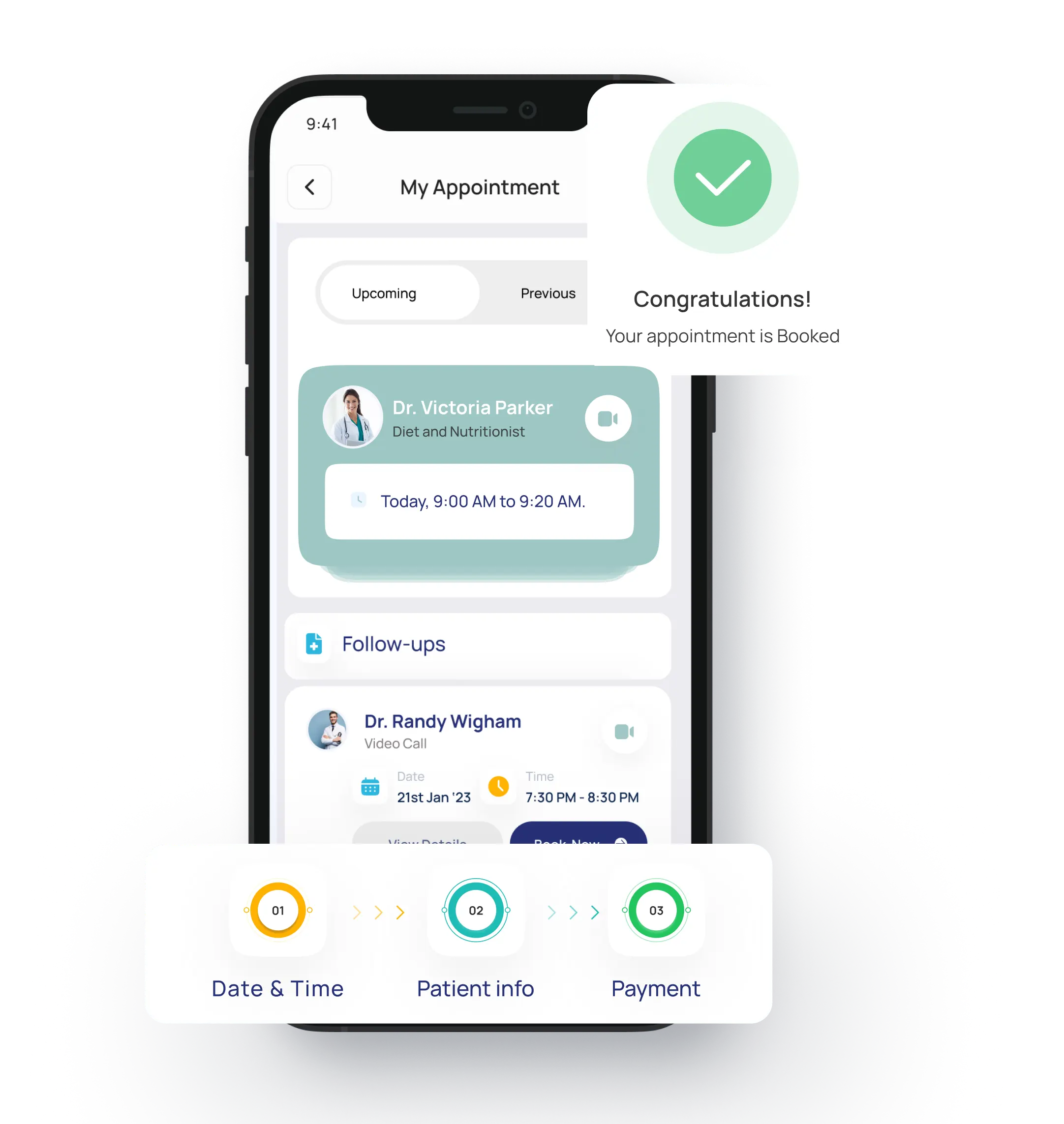 With your branded online clinic, you can expand your reach and offer accessible healthcare. Maximize your appointment bookings, decrease overload on your administrative staff, and save time and effort by simplifying operations online. Build patient trust by keeping them informed and engaged about your practices, services, and your commitment to their nutritional well-being.