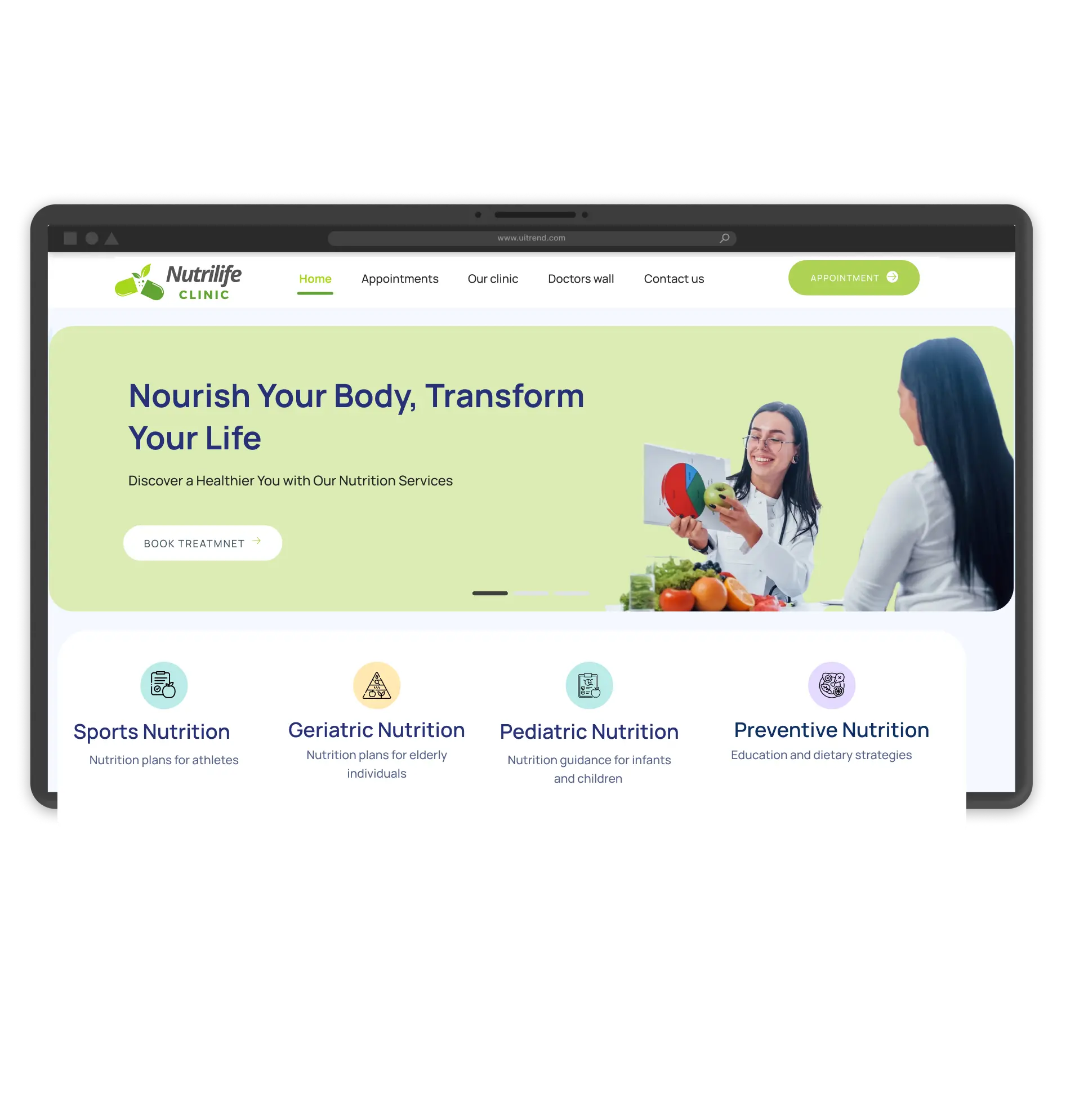 Your clinic website & app can effectively present the wide array of services and nutritional guidance available at your clinic. This ensures your patients are well-informed about the comprehensive nutritional care offered in your clinic, making it easier for them to make informed decisions about their health and wellness.